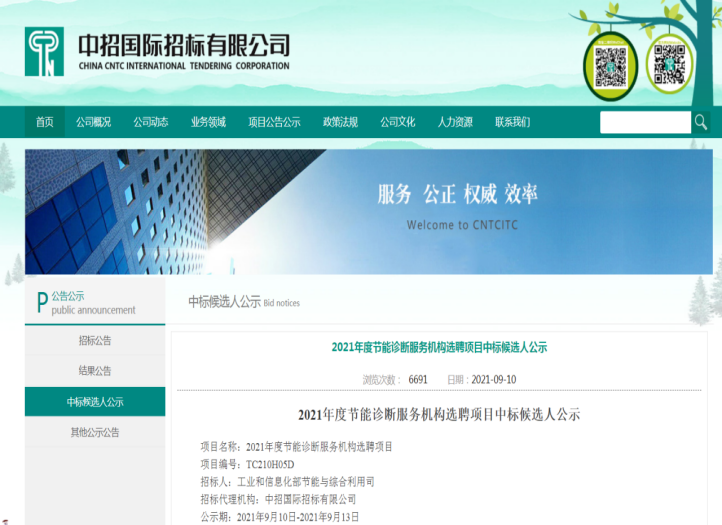9月10日,公司通過工業(yè)和信息化部節(jié)能與綜合利用司的采購招標程序,順利中標“2021年度節(jié)能診斷服務機構選聘項目”。這是繼2019、2020年之后,第三次中標年度節(jié)能診斷服務機構選聘項目,我公司已累計為21家工業(yè)企業(yè)提供公益性節(jié)能診斷服務。