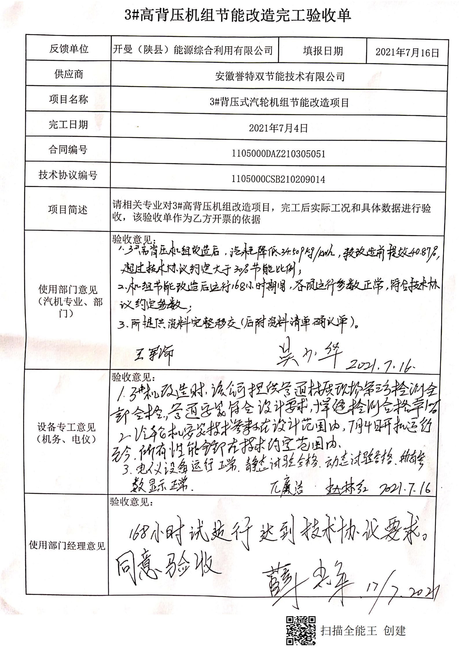 近日,我公司客戶中企五百強(qiáng)企業(yè)——杭州錦江集團(tuán)三門峽開曼(陜縣)能源綜合利用有限公司7.5MW高背壓式汽輪機(jī)組節(jié)能改造EPC項(xiàng)目順利通過工程驗(yàn)收,在此表示熱烈祝賀。