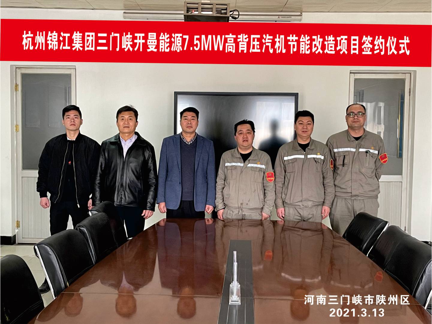 熱烈祝賀公司簽訂中國五百強(qiáng)杭州錦江集團(tuán)三門峽開曼(陜縣)能源綜合利用有限公司7.5MW高背壓式汽輪機(jī)組節(jié)能改造EPC項(xiàng)目