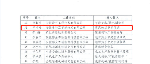 熱烈祝賀我公司總經(jīng)理袁克、副總經(jīng)理李清峰等同志成功入選安徽省工業(yè)節(jié)能專(zhuān)家信息庫(kù)