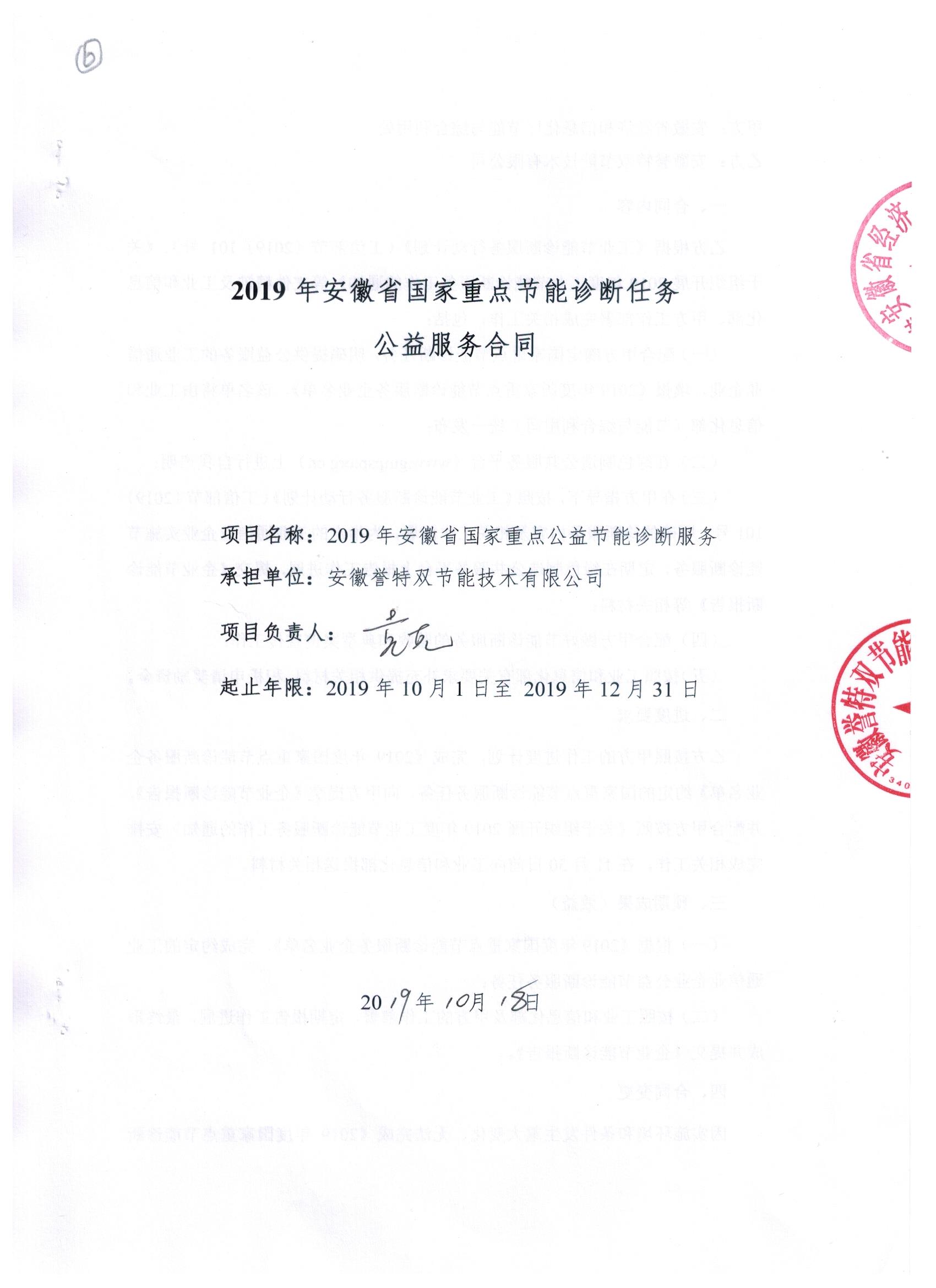 祝賀我司與省經(jīng)信廳簽訂2019年安徽省國(guó)家重點(diǎn)節(jié)能診斷任務(wù)公益服務(wù)合同