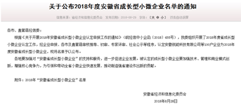 喜報(bào):我公司通過(guò)2018年度安徽省成長(zhǎng)型小微企業(yè)認(rèn)定