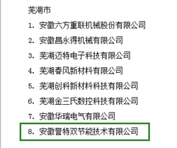 2018年8月29日,安徽省經(jīng)信委通過(guò)官網(wǎng)發(fā)布——2018年度安徽省成長(zhǎng)型小微企業(yè)認(rèn)定名單,我公司安徽譽(yù)特雙節(jié)能技術(shù)有限公司喜獲認(rèn)定,為蕪湖市僅有的八家上榜企業(yè)之一,也是蕪湖國(guó)家級(jí)經(jīng)濟(jì)技術(shù)開(kāi)發(fā)區(qū)和蕪湖高新技術(shù)創(chuàng)業(yè)園區(qū)唯一的入選企業(yè),含金量頗高。