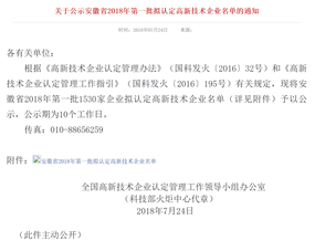 2018年7月24日,國家科技部全國高新技術(shù)企業(yè)認(rèn)定管理工作領(lǐng)導(dǎo)小組辦公室,通過科技部火炬中心官網(wǎng)發(fā)布——安徽省2018年第一批國家級高新技術(shù)企業(yè)認(rèn)定名單的公示通知,我公司安徽譽(yù)特雙節(jié)能技術(shù)有限公司榜上有名,目前已順利通過公示,正式予以認(rèn)定,公司在此表示熱烈祝賀!