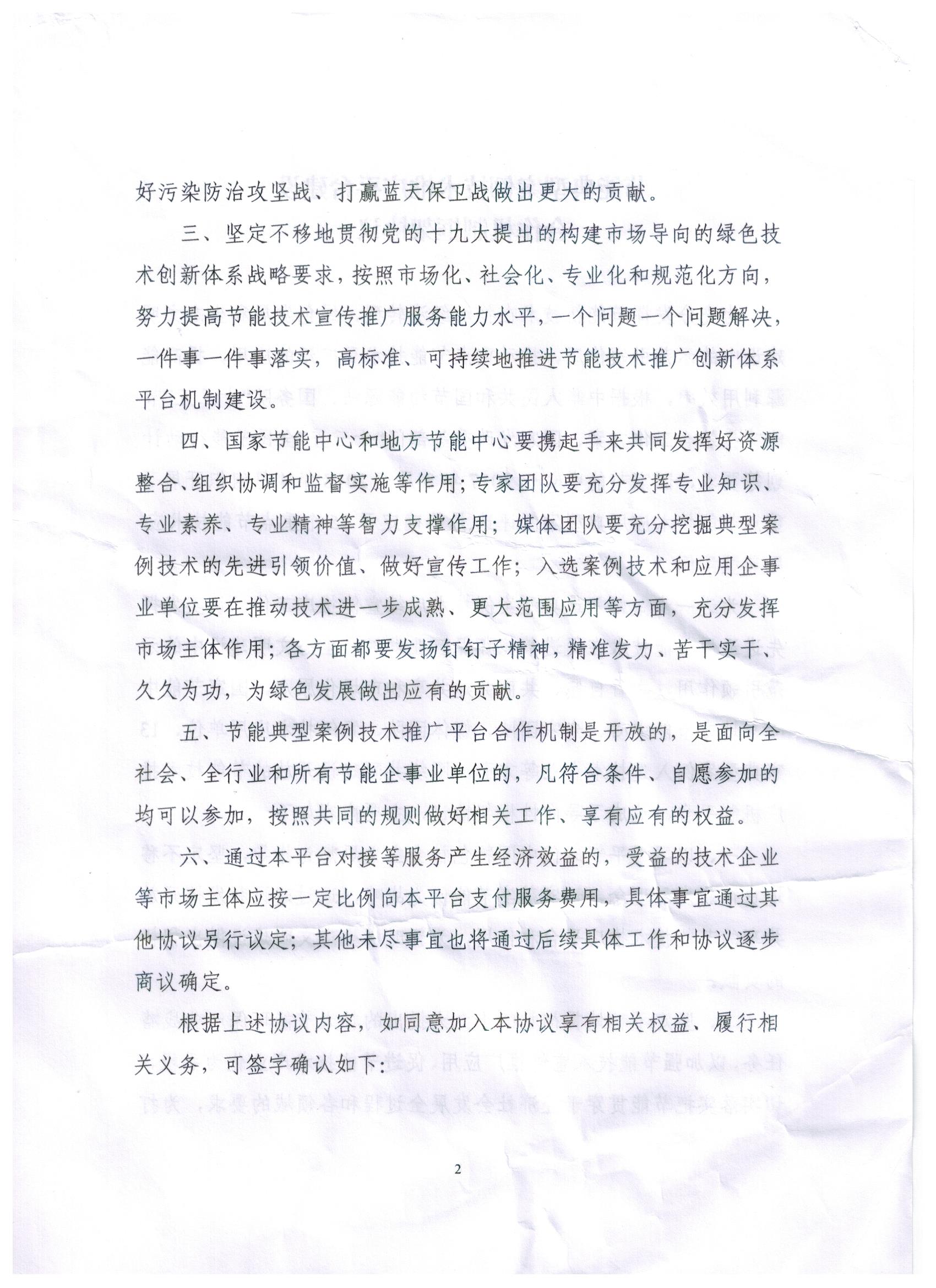 在對接會議現(xiàn)場,我公司與國家節(jié)能中心達(dá)成戰(zhàn)略合作意向,并進(jìn)行了現(xiàn)場簽約。國家節(jié)能中心的節(jié)能技術(shù)推廣合作機(jī)制從去年9月建立后,目前已簽約企業(yè)單位已76家,包括了技術(shù)企業(yè)、用能單位、研發(fā)機(jī)構(gòu)、宣傳媒體等,致力于打造一個開放、共建、共享的推廣平臺。