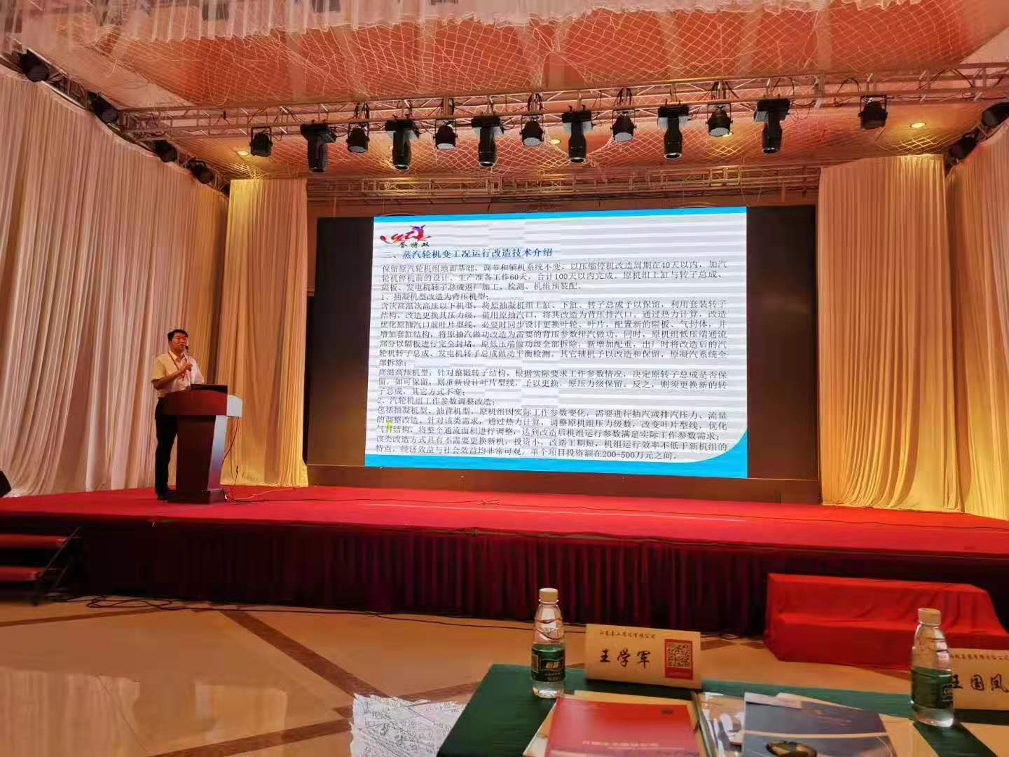 我司針對全國焦?fàn)t大型化及流程高效潔凈化關(guān)鍵支撐技術(shù)創(chuàng)新研發(fā)與應(yīng)用,上臺做專題報告——《大工業(yè)領(lǐng)域熱工系統(tǒng)綜合節(jié)能技術(shù)研發(fā)與應(yīng)用》。報告介紹我司三大核心技術(shù)蒸汽輪機(jī)通流結(jié)構(gòu)技改提效、蒸汽輪機(jī)變工況運行改造及余熱余壓資源綜合利用發(fā)電,平均每技改提效一臺汽輪機(jī)組或新上一項余熱余壓資源綜合利用項目,將在原基礎(chǔ)上多發(fā)1000kw.h以上的清潔電力,且減少對環(huán)境的污染,具有良好的經(jīng)濟(jì)及社會效益。