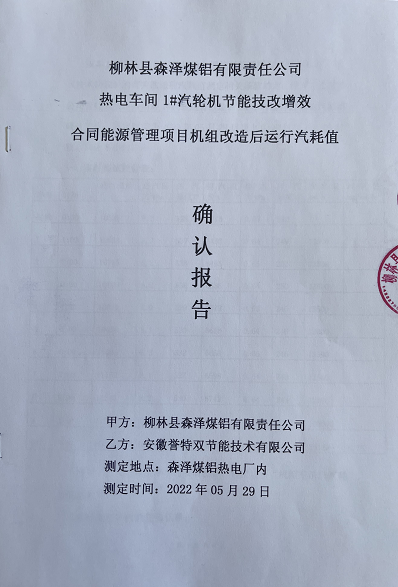 我公司以合同能源管理模式,全額投資實施的山西森澤煤鋁集團12MW背壓1#機組節(jié)能技改提效合同能源管理項目,自2022年5月19日開機沖轉(zhuǎn)成功并網(wǎng)以來,機組各項參數(shù)指標(biāo)均正常、穩(wěn)定。項目于5月29日順利通過工程驗收,實測同等工況條件下,節(jié)能提效比例達34.1%,遠(yuǎn)超合同約定的30.7%考核指標(biāo)。