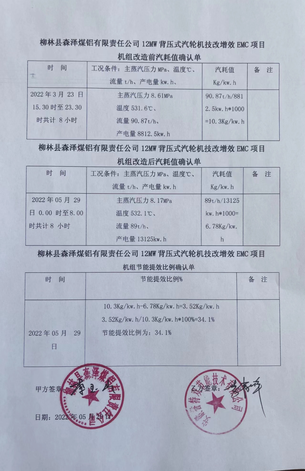 山西森澤煤鋁集團12MW背壓1#機組節(jié)能技改提效合同能源管理項目順利通過工程驗收節(jié)能提效比例達34.1%遠(yuǎn)超合同約定。