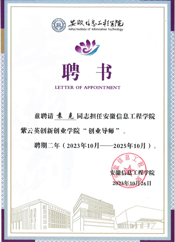 安徽信息工程學(xué)院紫云英創(chuàng)新創(chuàng)業(yè)學(xué)院“創(chuàng)業(yè)導(dǎo)師”