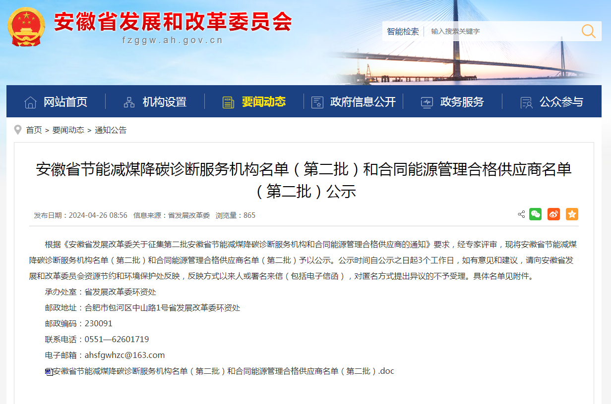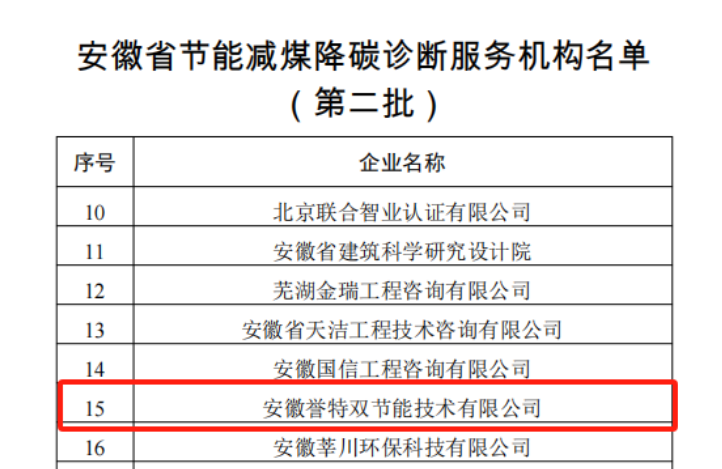 喜訊--熱烈祝賀公司雙入選安徽省第二批節(jié)能減煤降碳診斷服務(wù)機構(gòu)和合同能源管理合格供應(yīng)商名單