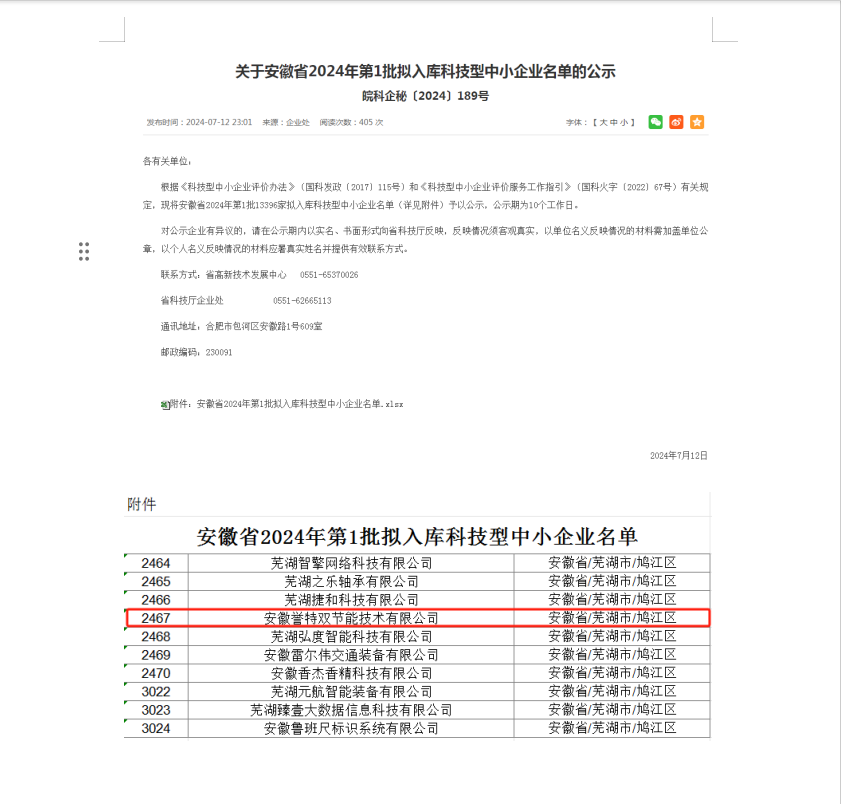 入庫安徽省2024年第一批科技型中小企業(yè)