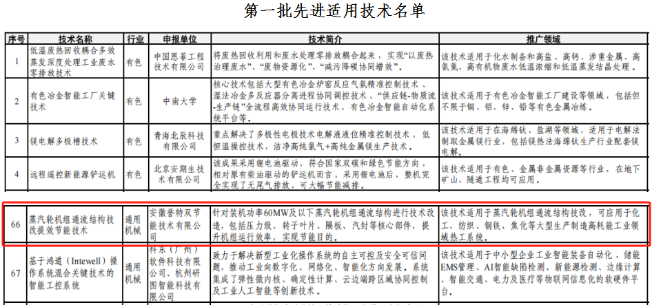 近日,工業(yè)和信息化部在全國范圍內(nèi)開展先進適用技術(shù)(第一批)遴選工作,經(jīng)自主申報、形式審查、專家評審等程序,最終擇優(yōu)評選出111項技術(shù)列入工信部第一批先進適用技術(shù)目錄,我公司“蒸汽輪機組通流結(jié)構(gòu)技改提效節(jié)能技術(shù)”榮列榜單,在此表示熱烈祝賀。