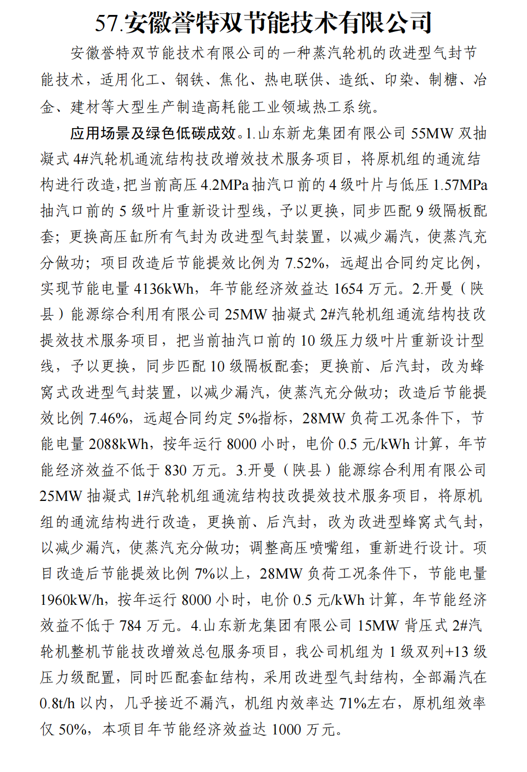 我公司蒸汽輪機(jī)的改進(jìn)型氣封節(jié)能技術(shù),配合汽輪機(jī)通流改造節(jié)能技術(shù)的綜合有效應(yīng)用,針對(duì)60MW裝機(jī)功率以下的抽凝式機(jī)組,具有改造周期短、投資小、節(jié)能效率高、項(xiàng)目投入產(chǎn)出回報(bào)率高的特性,類(lèi)似節(jié)能改造案例技術(shù)成熟穩(wěn)定,已廣泛應(yīng)用于化工、鋼鐵、有色、冶煉等高耗能中國(guó)五百?gòu)?qiáng)客戶群體,歡迎廣大用能單位實(shí)地考察調(diào)研,交流合作!
